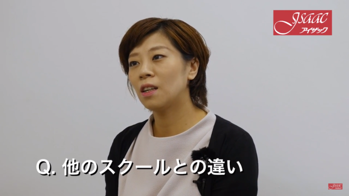 A. アイザックでは他のスクールとは違って参加型のレッスンになっています。他の所では大人数のレッスンで、ただ先生の講義を聞くスタイルだということをよく聞きます。